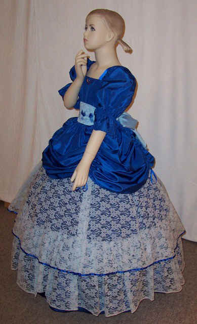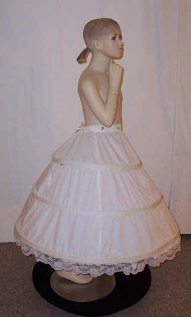 Children's hoop petticoats attach to the inside of the front of the dress with press snaps.