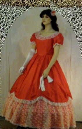 Crinoline Style Dress These dresses are made with good quality satins. The bodices are lined with polycotton to be comfortable against the skin. These costumes look even better "in the flesh" than in photo's. |